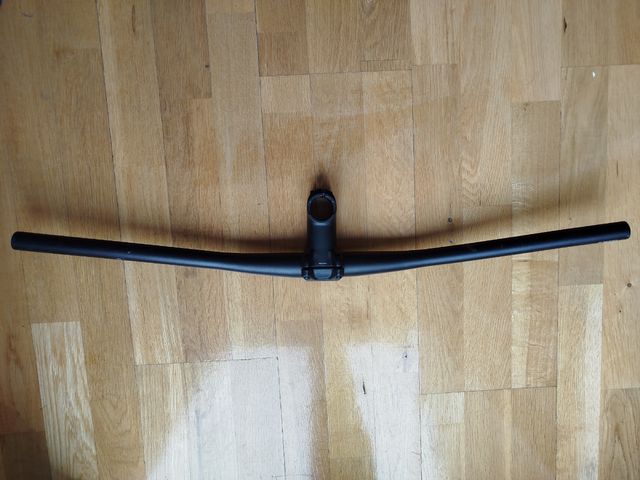 Manillar y potencia de la marca Trek. - Color negro. - Diseño curvo.