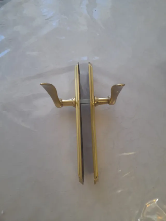 Juego de manillas para puerta con acabado dorado. - Diseño elegante y moderno. - Material metálico resistente.