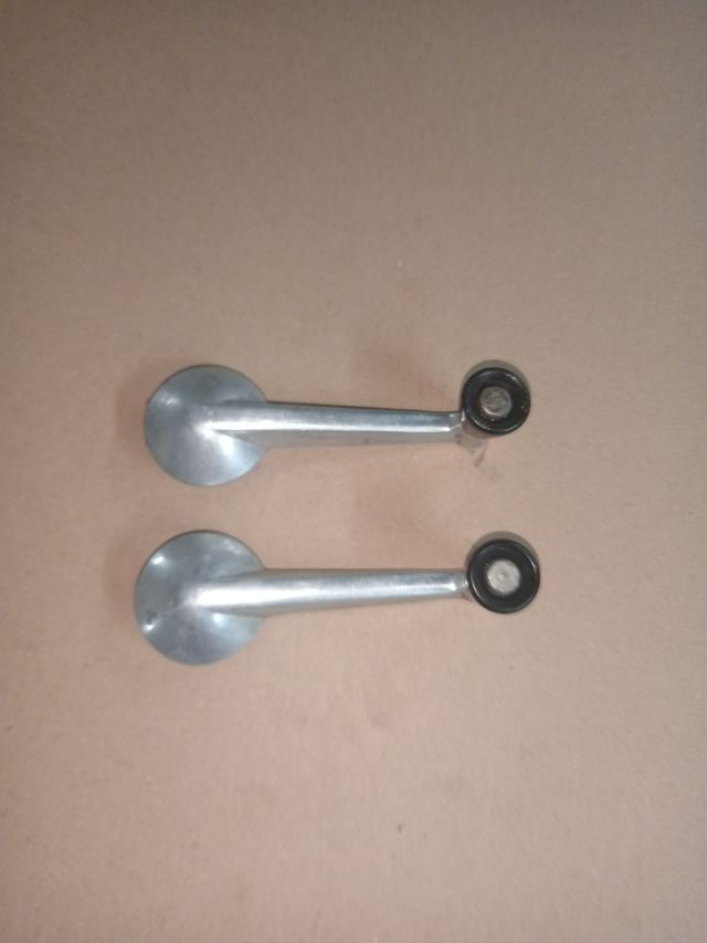 Pareja de manillas elevalunas para Seat 600. Se encuentran en buen estado, con señales normales de uso. - Fabricadas en aluminio.