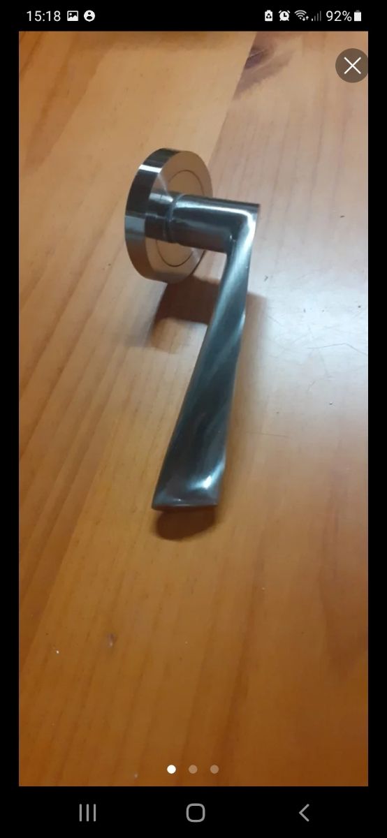 Juego de manillas para puerta. Izquierda y derecha con roseta redonda metalica. Acabado mate. Nuevas en su caja original. Varias disponibles.