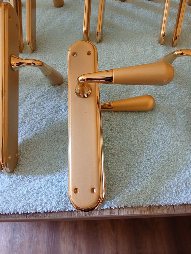 Manillas puerta oro 6u y 1 con cerradura entrada