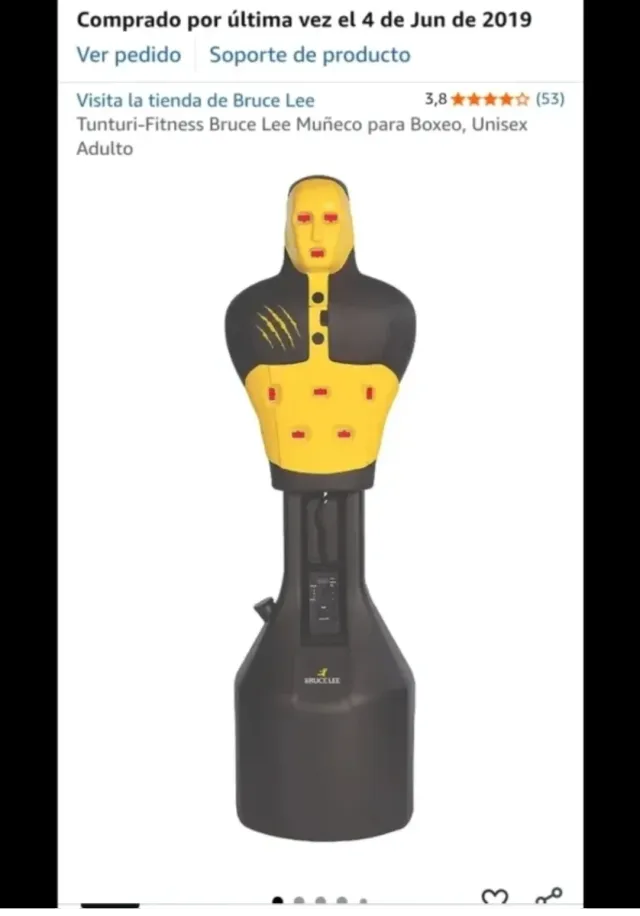 Detalles del productoVendo maniquí de boxeo Tunturi-Fitness Bruce Lee.Está en buen estado,pero con evidentes señales de uso.Es ideal para entrenar.Tiene un pequeño corte como se puede comprobar en la mejilla derecha.