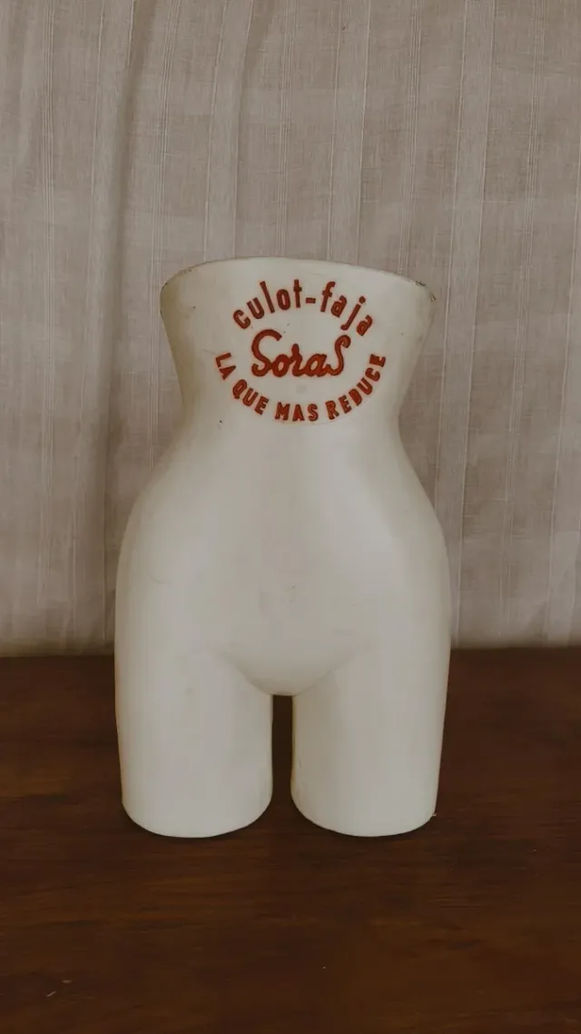 Maniquí vintage de la marca Soras, diseñado para exhibir fajas o culottes.