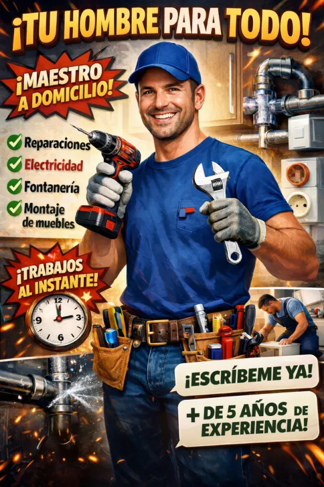 Detalles del producto¿Necesitas ayuda con las pequeñas reparaciones de tu casa? ¡Yo lo soluciono rápido y bien! Soy un profesional serio, puntual и detallista.