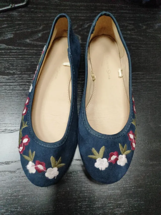 Manoletinas bordadas azul marino T.36