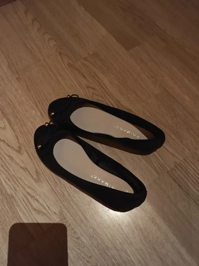 Manoletinas negras con un detalle de lazo. - Diseño plano. - Marca: Primark.