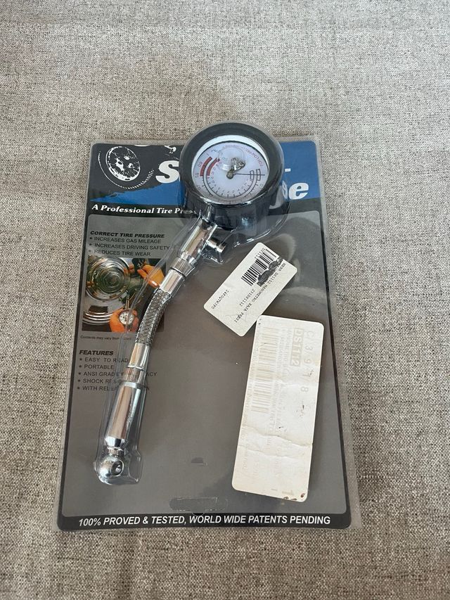 Detalles del productoManómetro profesional para medir la presión de los neumáticos. Diseñado para ser fácil de leer y portátil.