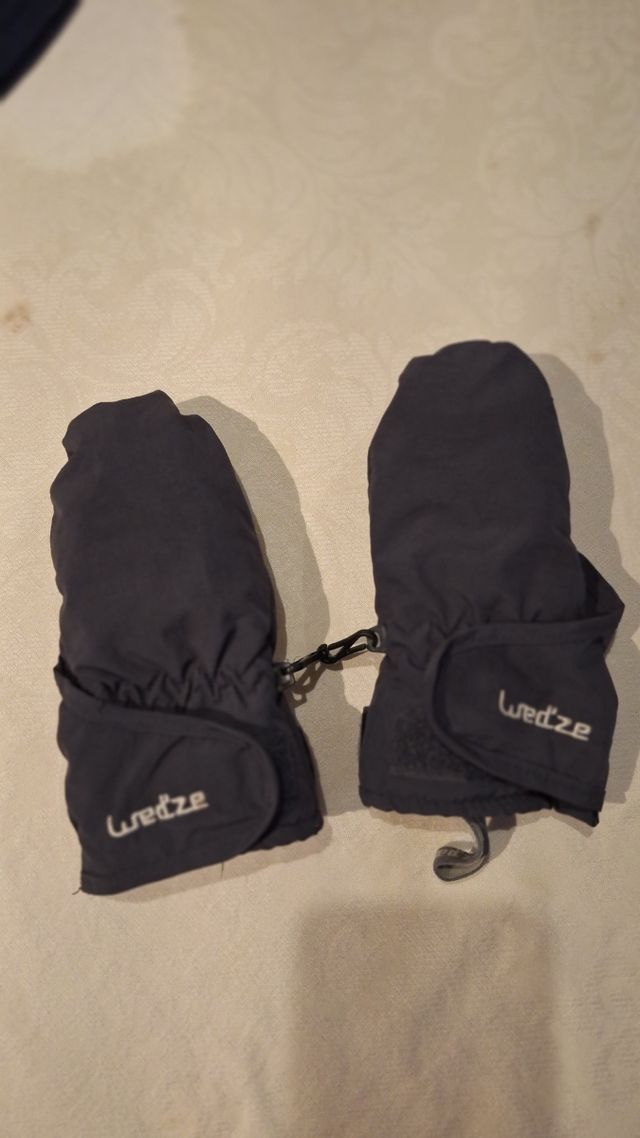 Manopla niño pequeñito o bebé. Decathlon. Gris muy oscuro. Con enganche y goma para la muñeca.