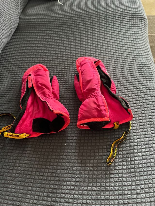 Detalles del productoManoplas de esquí para niños en color rosa brillante. Perfectas para mantener las manos calientes en la nieve.