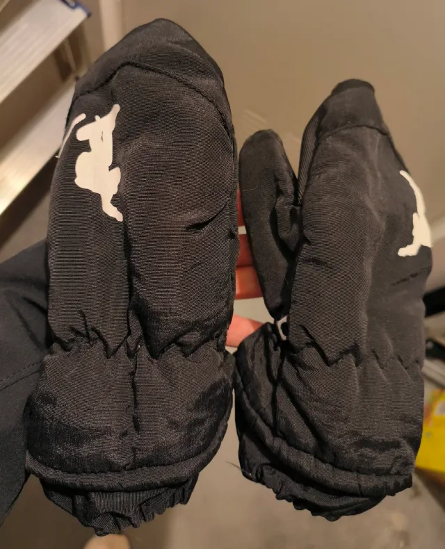 Manoplas de esquí en color negro, diseñadas para niños de 7 a 9 años aproximadamente. Waterproof.