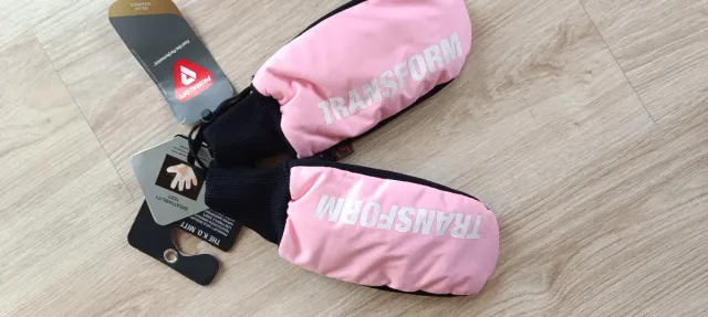 Detalles del productoManoplas de la marca Transform, en color rosa y con la palabra TRANSFORM impresa.