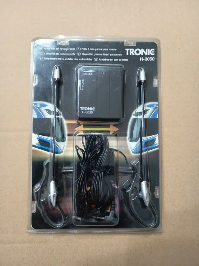 Detalles del productoKit manos libres para moto marca TRONIC, modelo H-3050. Incluye dos auriculares y unidad de control.