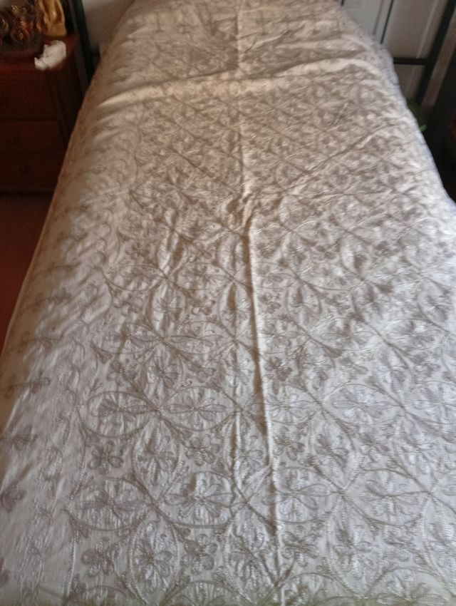 Preciosa manta bordada de color beige. Ideal para añadir un toque de elegancia a tu hogar. - Diseño floral delicado. - Tejido suave y ligero. - Perfecta para sofá o cama.