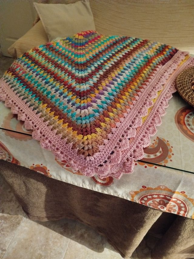 Detalles del productoPreciosa manta de sofá tejida a mano con técnica crochet. Es una pieza única, ideal para añadir calidez y color a tu hogar.