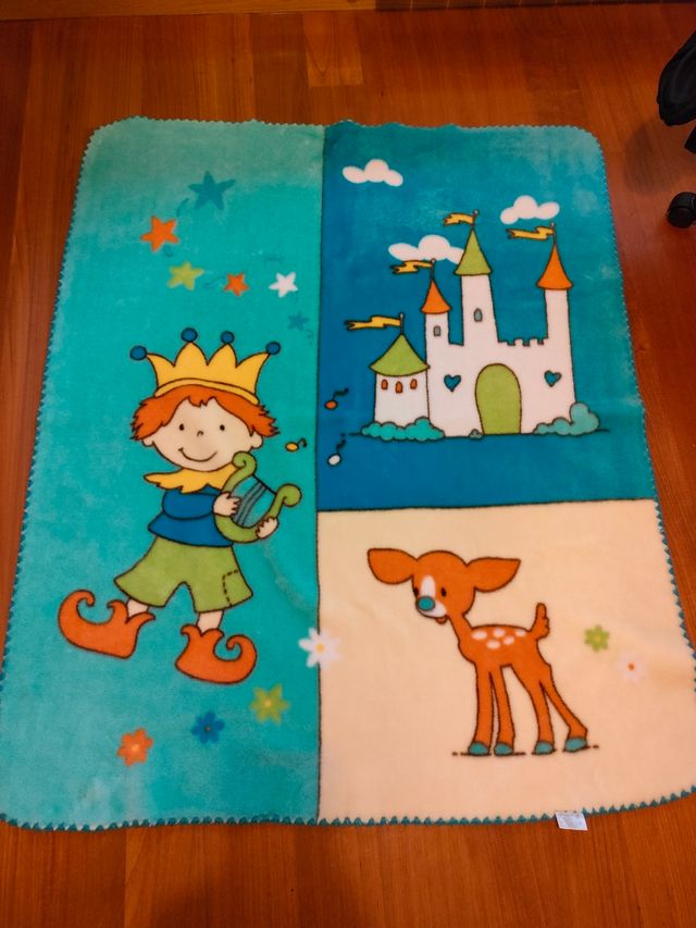 Manta suave y cálida para cuna con un diseño infantil. Buenas calidad, hecha en España.