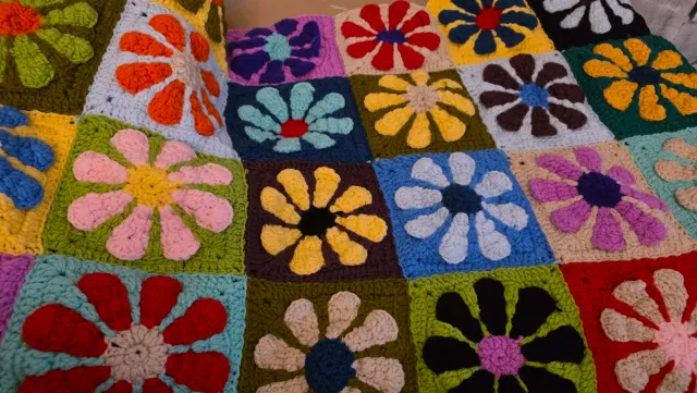 Detalles del productoManta de ganchillo con un diseño floral vibrante y colorido. Perfecta para añadir un toque acogedor a tu hogar.