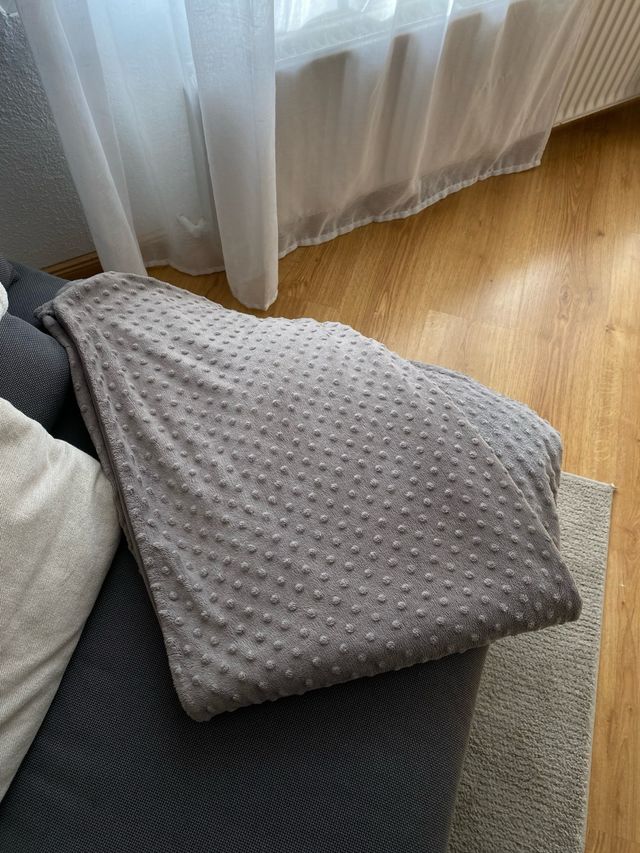 Manta con diseño de lunares en relieve. Marca textura. Muy poco usada. Medidas 190 x 125 cm