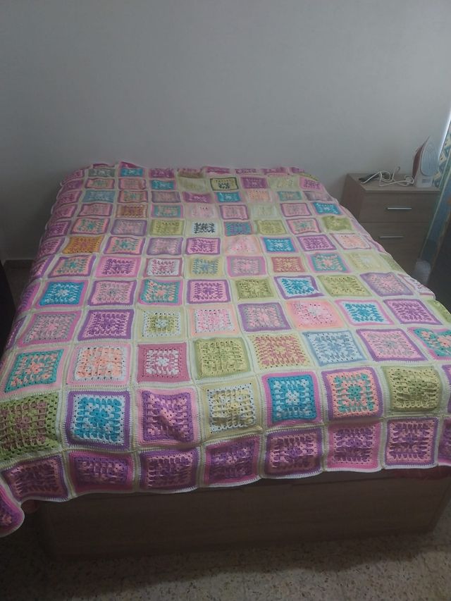 manta ganchillo echa a mano para cama o para sofá de colores medidas largo 2,23 cm ancho 1,86