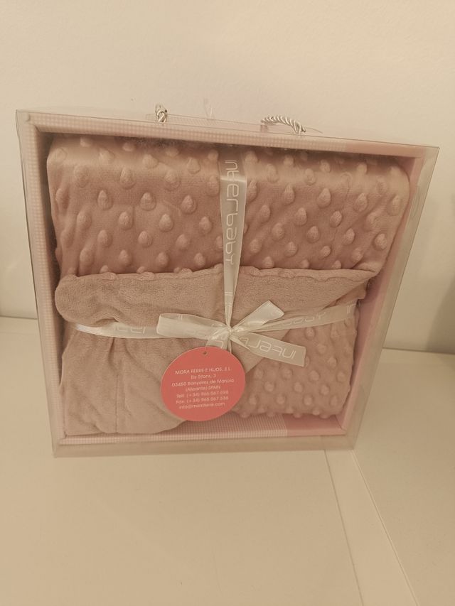 Manta NUEVA en su caja, marca interbaby, rosa maquillaje.