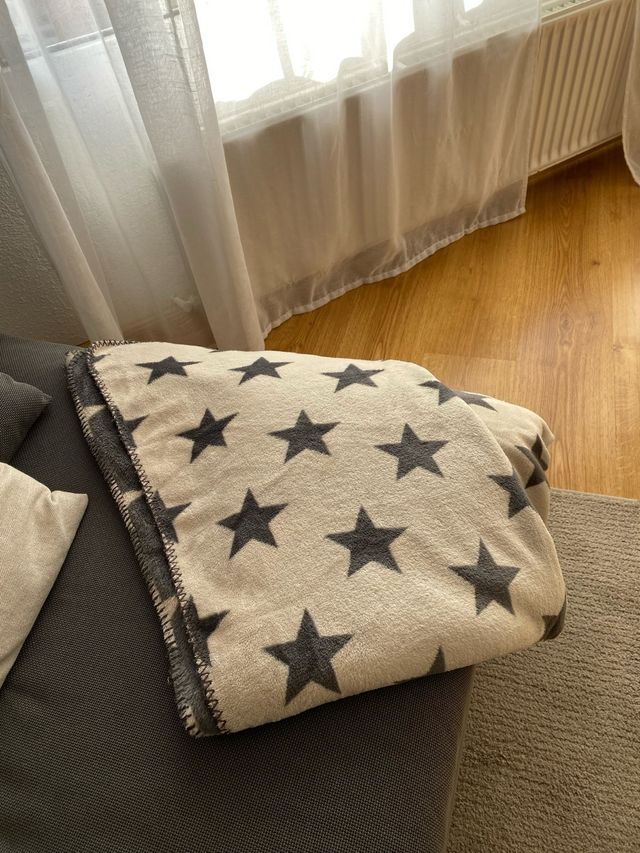 Manta de estrellas grises de Unit. Comprada en Hipercor la temporada pasada. Apenas usada. Medidas de 190 x 130 cm