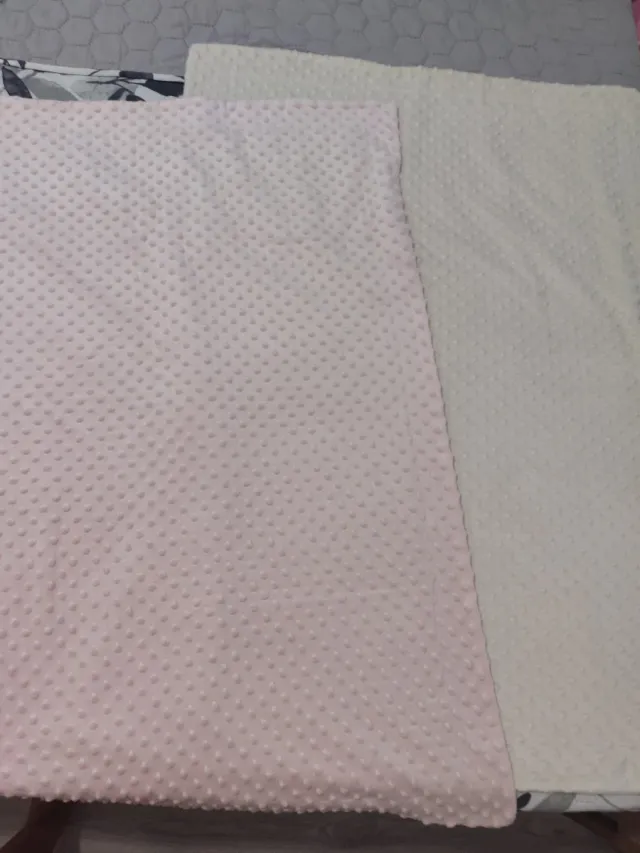 Conjunto de mantas suaves para bebé. - Manta rosa con relieve de topitos y parte lisa - Manta beige con relieve de topitos y parte lisa