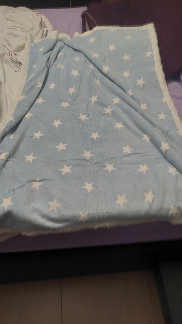 Manta de cuna súper calentitas para cunas de 120x60,una rosa y otra azul con estrellas y corazones. 15 euros cada una. Las dos 25 euros