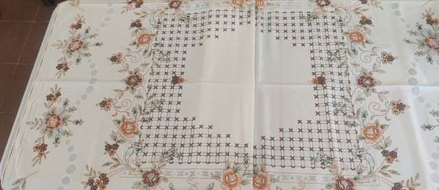 Mantel bordado con 8 servilletas flores marrón