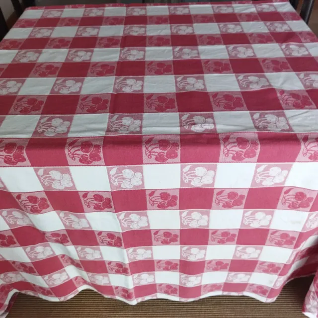 Mantel Cuadros Rojo y Blanco con dibujo de cerezas