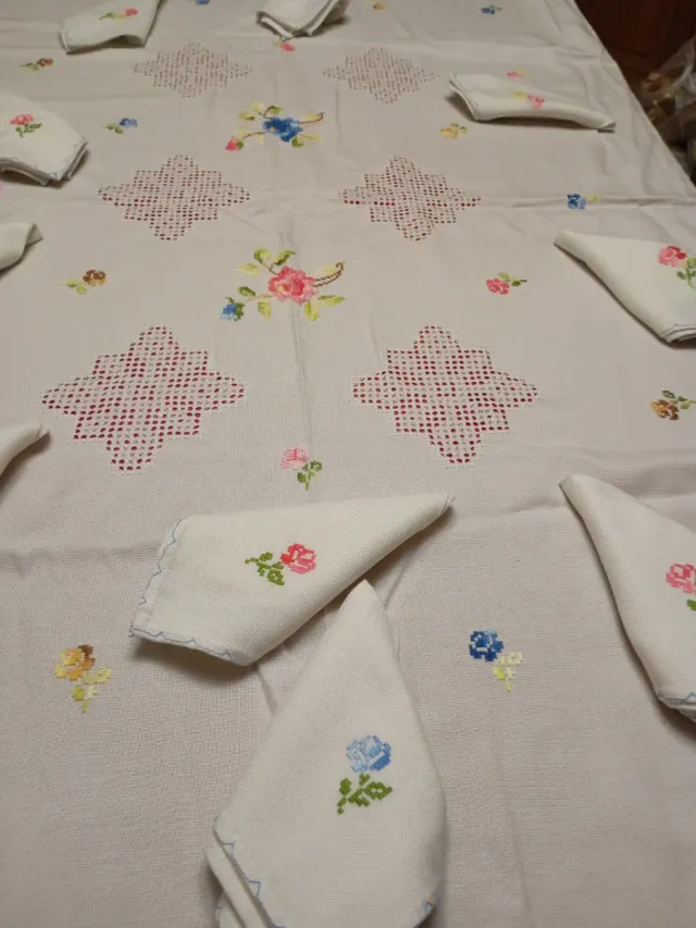 Mantelería bordada a mano con 10 servilletas