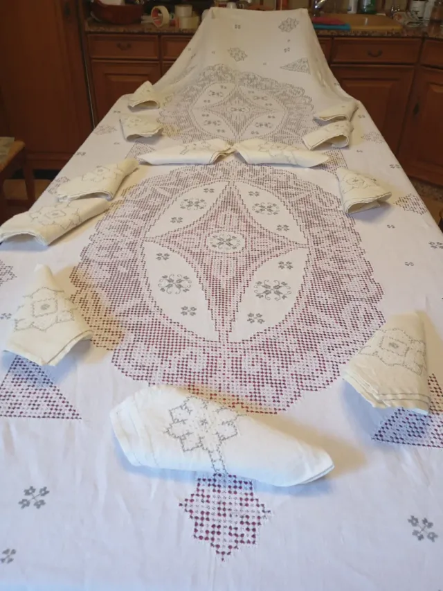 Mantelería Lagartera Bordada a Mano y desilada lin