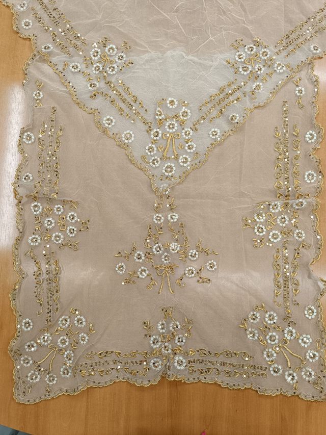 Manteleta tul bord. marfil oro, lent. oro. 73cm