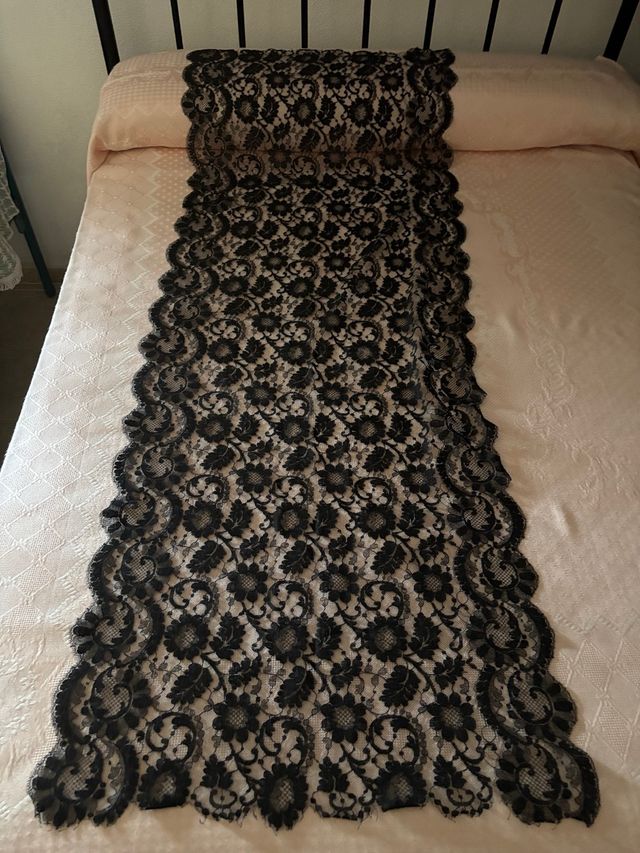 Detalles del productoElegante mantilla antigua con un delicado diseño de encaje floral.
