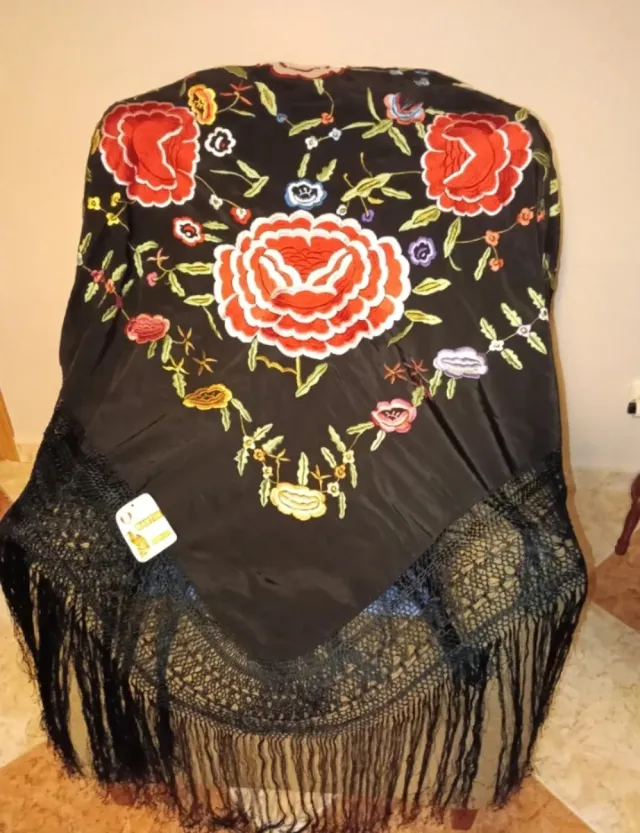 Mantón de Manila bordado flores nuevo