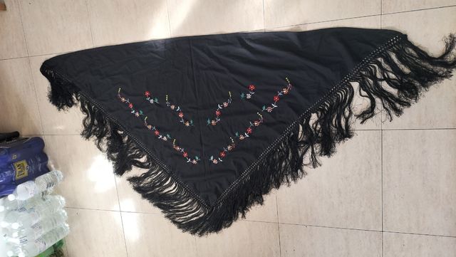 Detalles del productoPrecioso mantón de manila negro con flores bordadas a mano muy muy bonito no pasará desaparecido