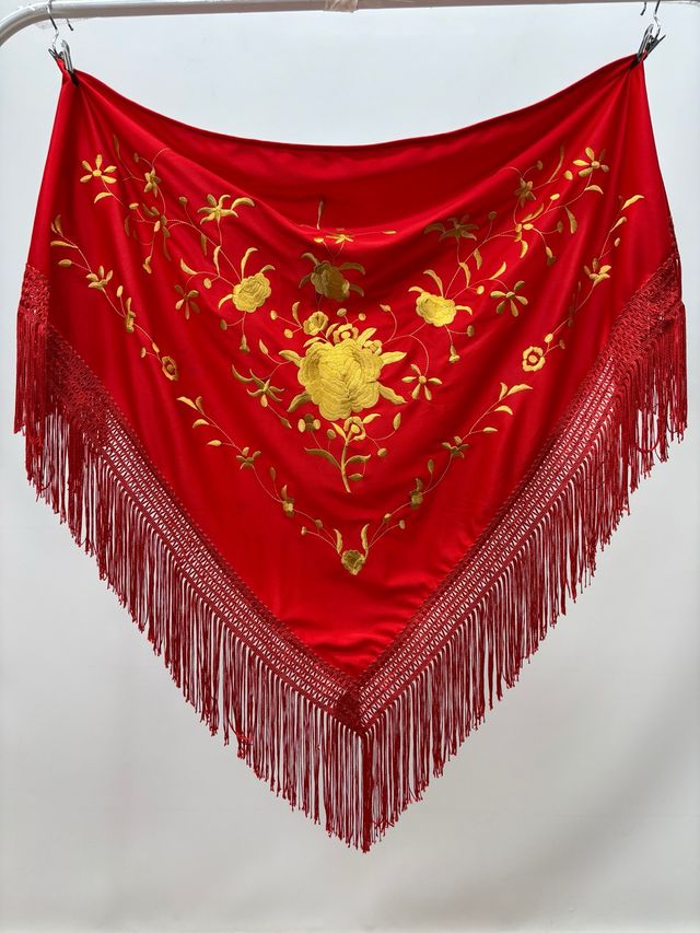 Mantón Flamenco Rojo Bordado Dorado