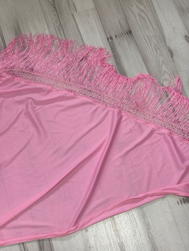 Mantón flamenco rosa con flecos conservatorio