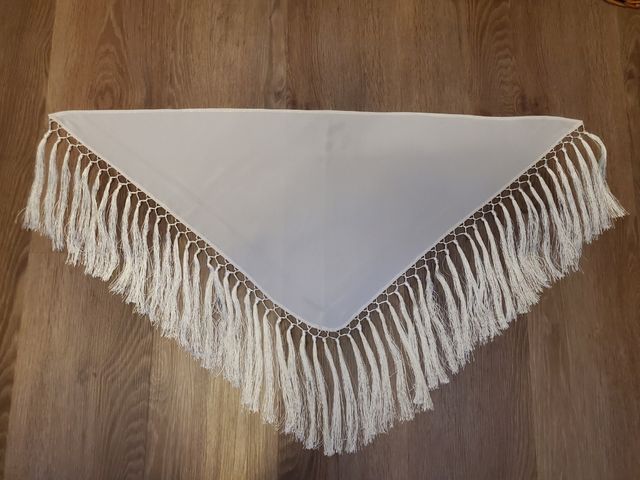 Mantoncillo color crudo o hueso con flecos de seda