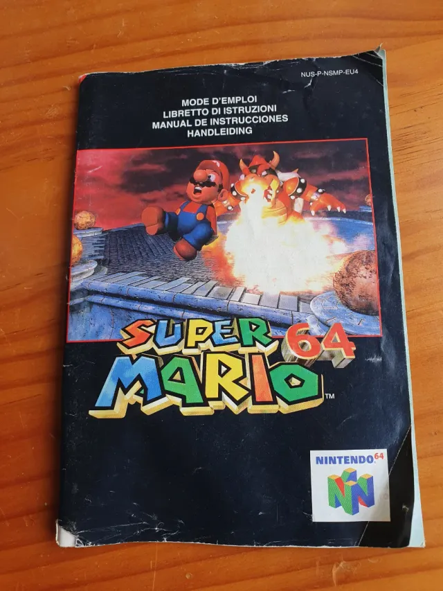 Detalles del productoManual de instrucciones para el videojuego Super Mario 64. La portada está tocada y tiene un borde doblado. El resto está bastante bien. Si alguien no lo tiene y quiere uno para ir tirando hasta que encuentre uno mejor...