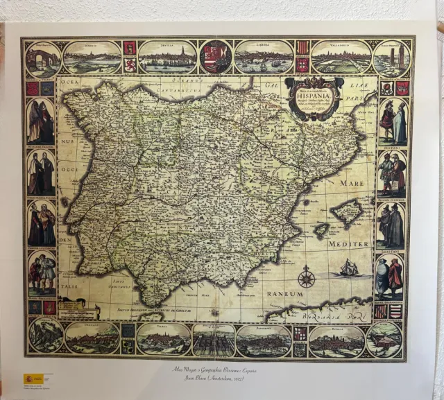 Detalles del productoReproducción de un mapa antiguo de España, basado en la obra de Joan Blaeu en 1672.