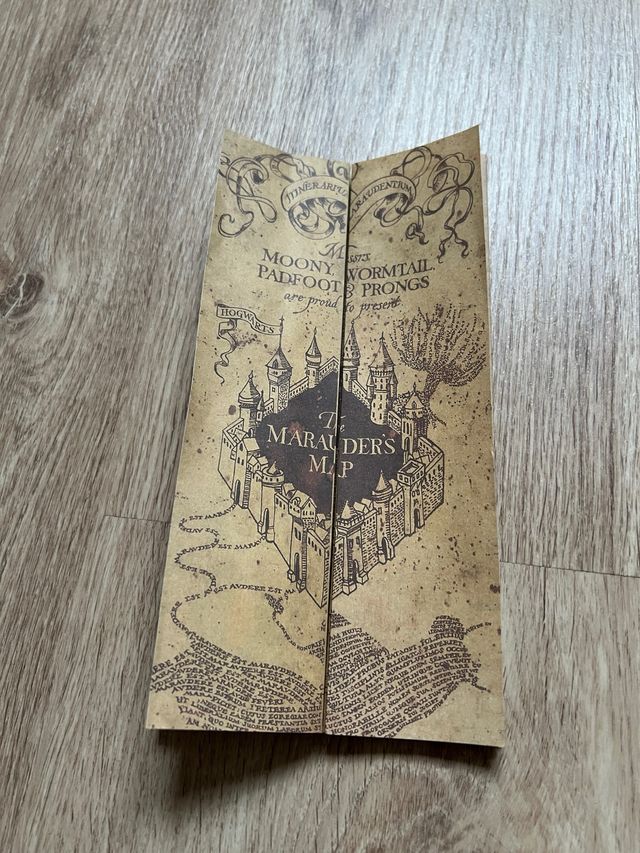 Detalles del productoRéplica del icónico Mapa del Merodeador de Harry Potter. Un objeto de colección para fans.