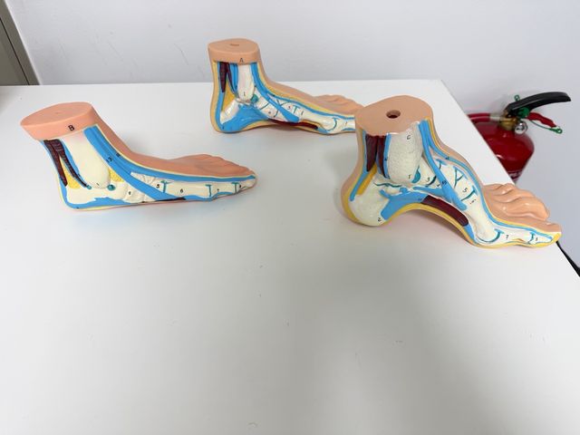 Detalles del productoSet de 3 maquetas anatómicas de pies, representando diferentes tipos de pisada: pie plano, pie cavo y pie normal. Ideales para estudio o demostración.