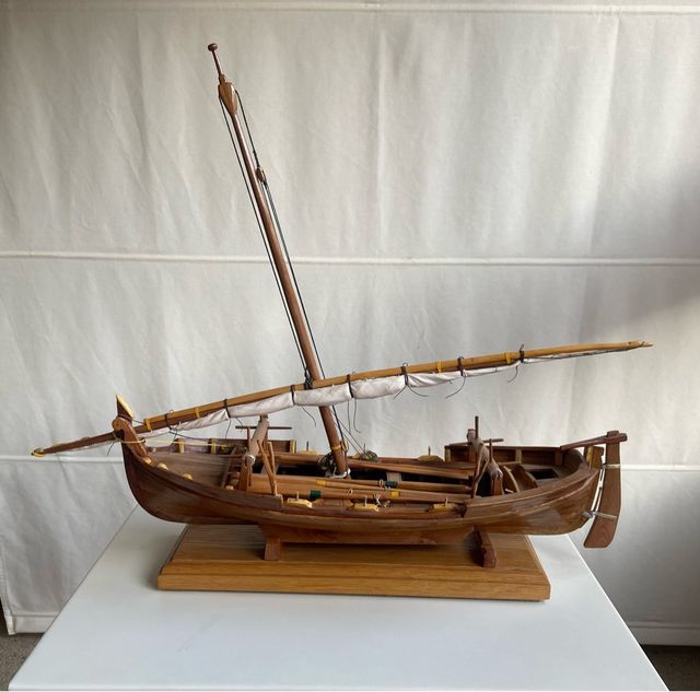 Detalles del productoDetallada maqueta de un barco pescador, elaborada en madera.