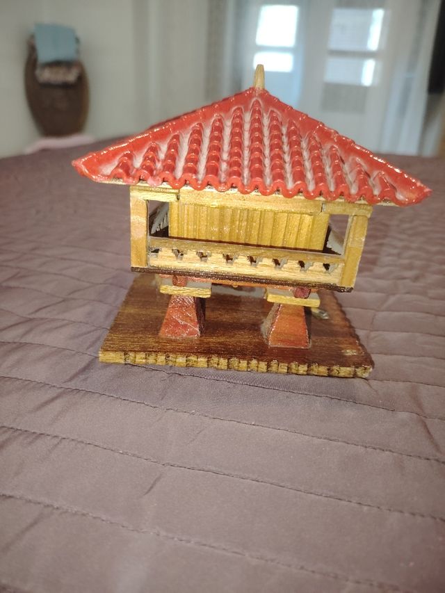 Detalles del productoPreciosa maqueta de una casa, hecha de madera. Es pequeña y detallada.