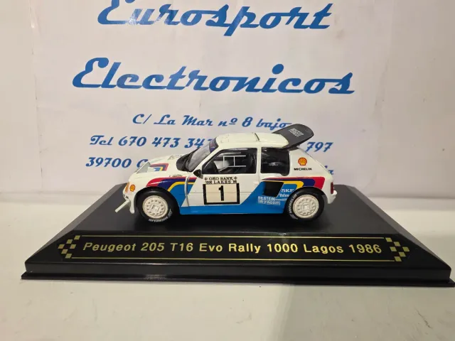 Detalles del productoRéplica a escala 1/43 del Peugeot 205 T16 Evo 2 Ganador del Rally 1000 Lagos en 1986.