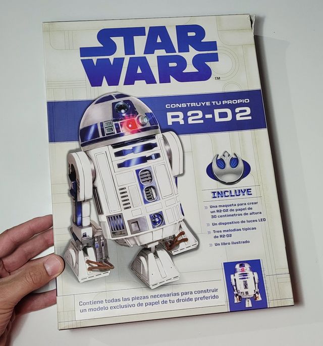 Detalles del productoMaqueta para construir tu propio R2-D2 de Star Wars (Planeta Gifts, Lucasfilm). Está incompleta, le falta el dispositivo de luces Led y el libro ilustrado. Perfecta para completar la tuya y simplemente decorar tu estantería!
