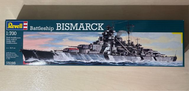 Maqueta del acorazado Bismarck de Revell. - Escala 1:700. - Longitud de 35,9 cm. - Incluye instrucciones de montaje. Para más información, enviar mensaje.