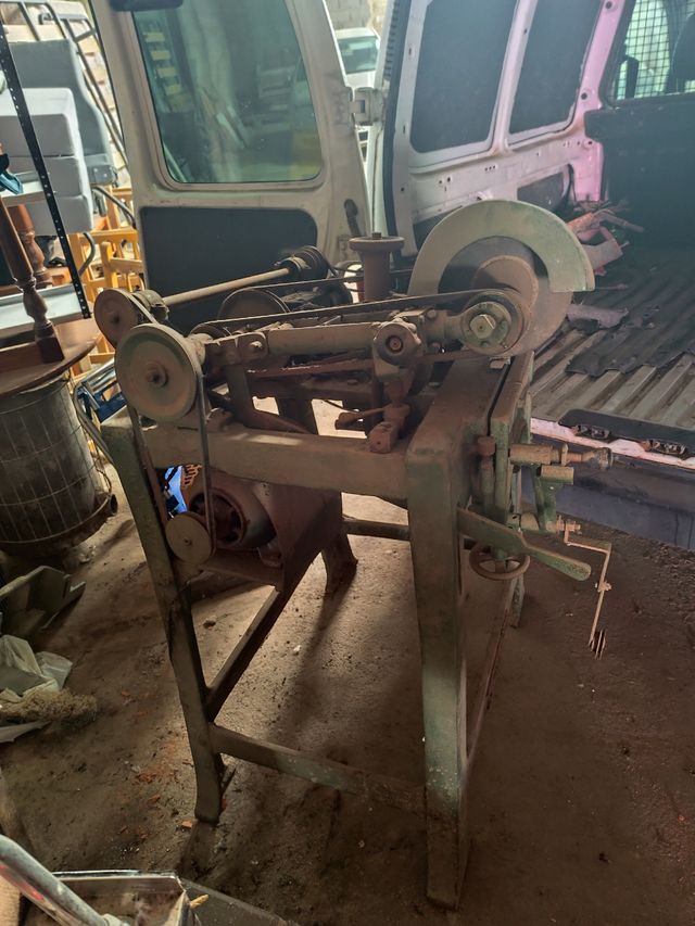 Se vende máquina afiladora de sierras. - Estructura metálica robusta. - Sistema de poleas y correas. - Disco de corte circular.