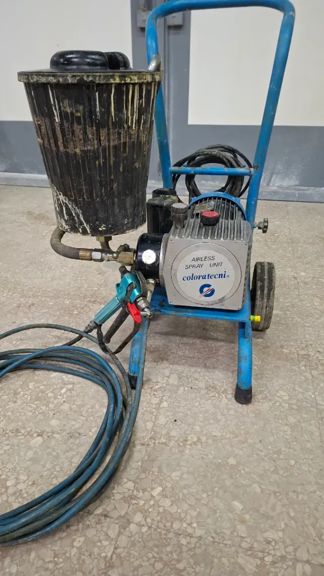 Se vende máquina airless eléctrica Coloratecni. - Unidad de pulverización airless. - Incluye manguera y pistola. - Montada sobre carro con ruedas.