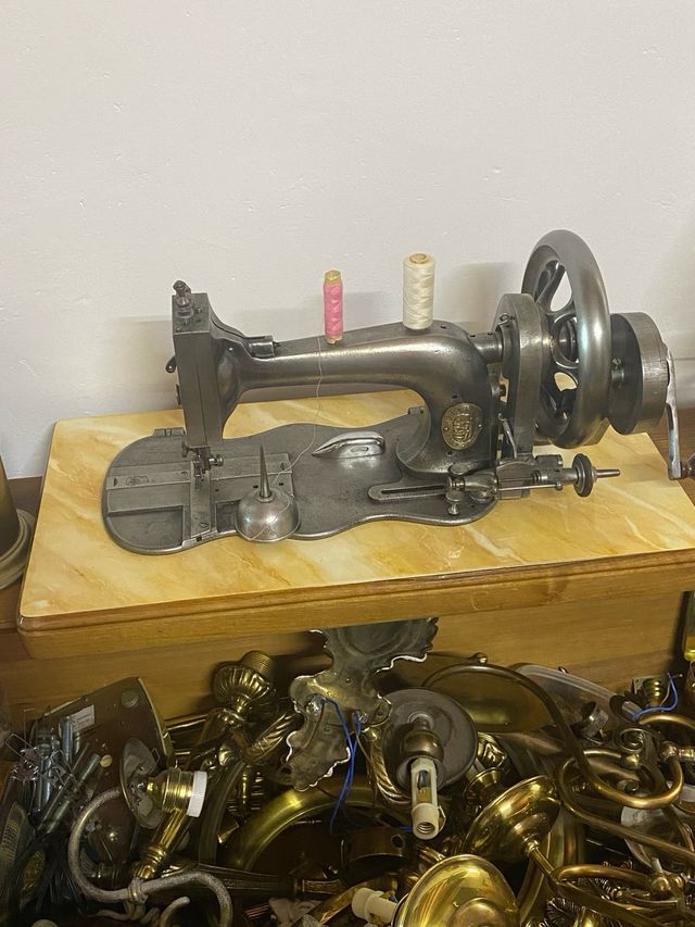 antigua maquina de coser de mano. tal cual se ve en las fotos , no se si funciona .