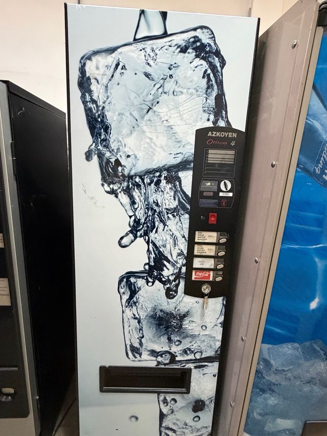Máquina expendedora Azkoyen modelo Office 4. - Configurada con 3 canales de agua 0,5L y uno de latas, pero se puede modificar al agrado. - Monedero incluido